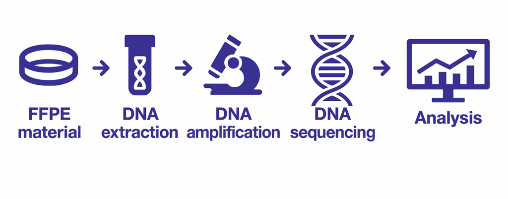 The assay detects a pattern of chemical changes on DNA which can indicate the condition.