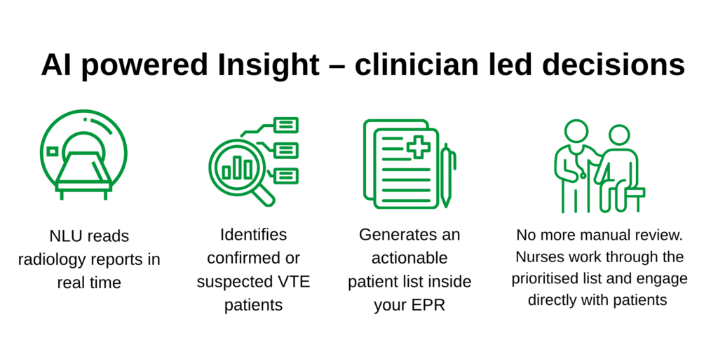 Thrombosis team reviews all new diagnoses quickly and ensures the best care is given. All blood clots associated with a stay in the hospital are now easily identified.